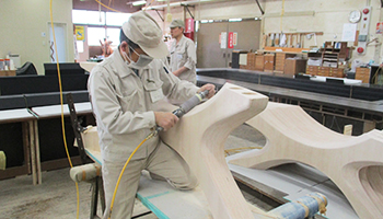 東日本大震災の被災地域(岩手県宮古市)産木材を利用した脚部は、天童木工が担当しました。