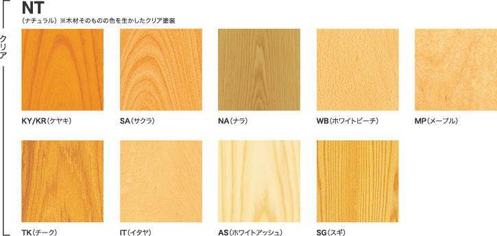 ここでは、当社製品に使用されている木部カラーの記号とその名称を紹介します。